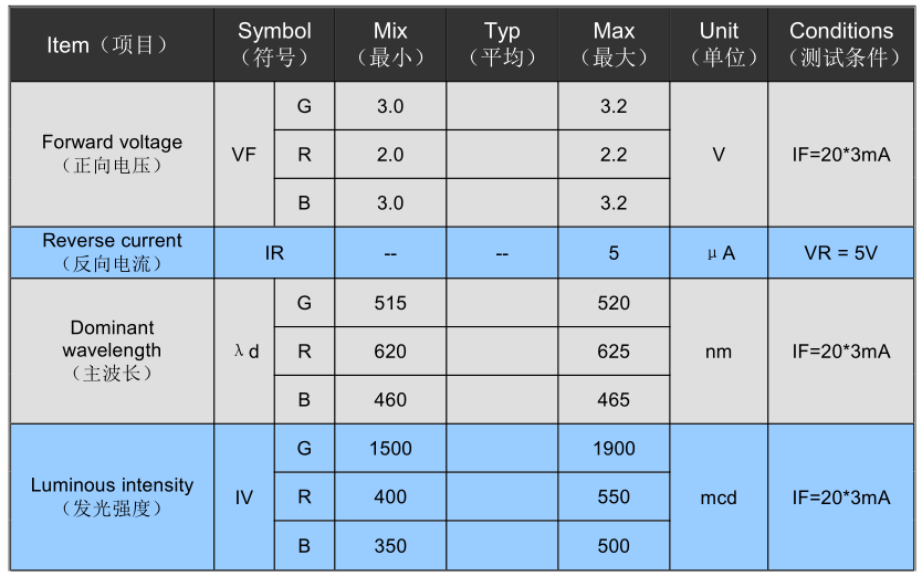 5050rgb燈珠參數(cree5050rgb貼片LED燈珠)