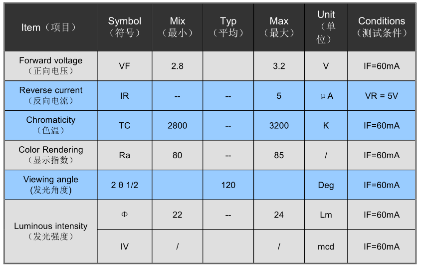 5050燈珠參數(5050貼片LED燈珠參數)