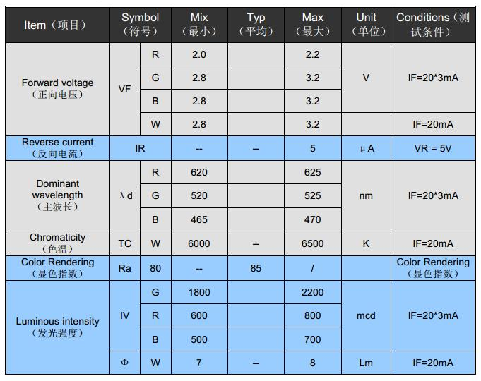5050rgb燈珠參數(shù)(cree5050rgb貼片LED燈珠)