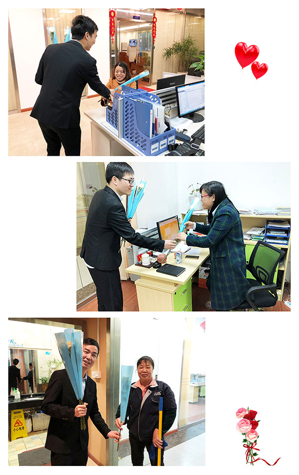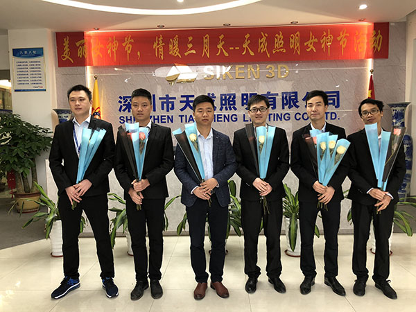 3月8日早上,天成照明男神集體便備好了玫瑰花,靜候女神歸來, 為女神們獻上節日的問候和祝福,當女神們進入公司, 面對突如其來的鮮花, 滿滿的詫異表情跟洋溢在臉上美滋滋的笑容