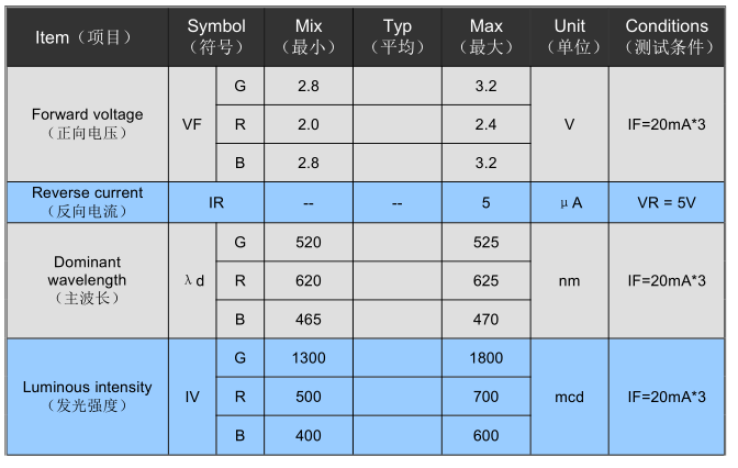 5050rgb燈珠參數(shù)(cree5050rgb貼片LED燈珠)