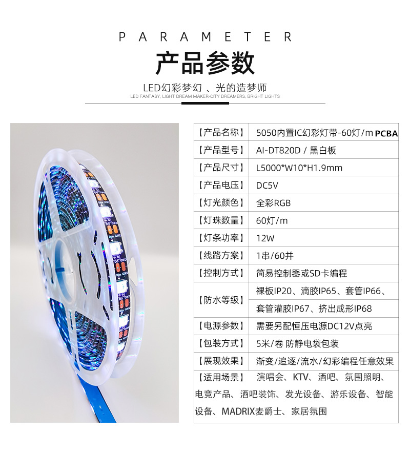 5050幻彩內/外置IC軟燈帶PCBA方案