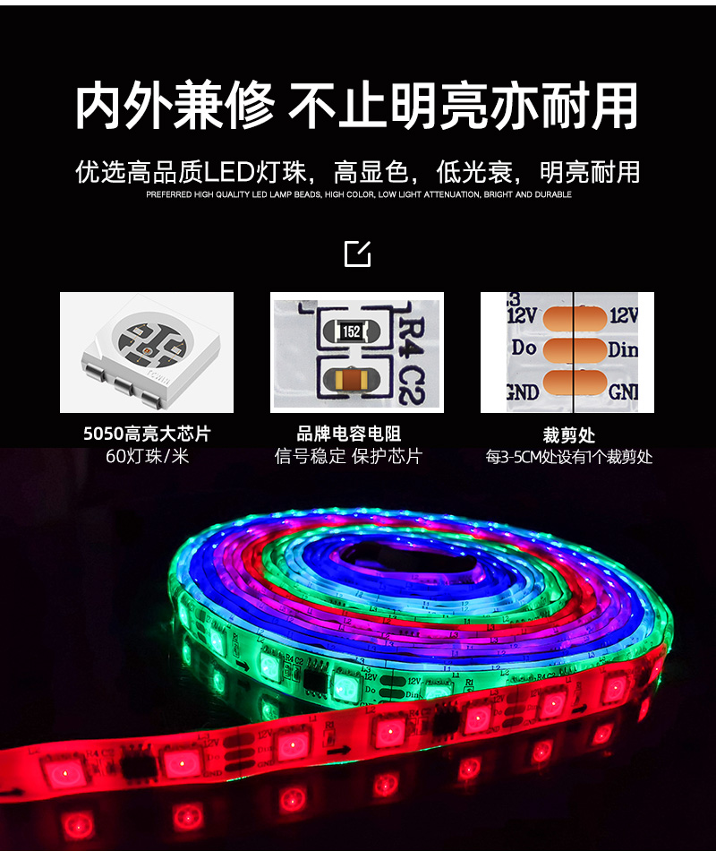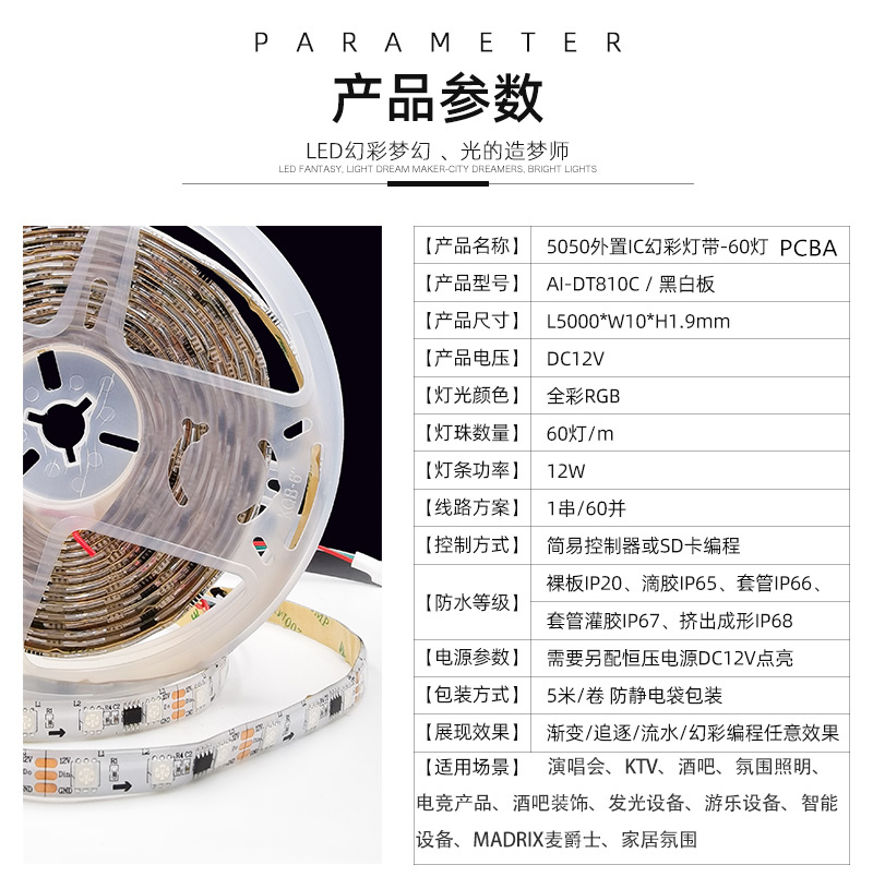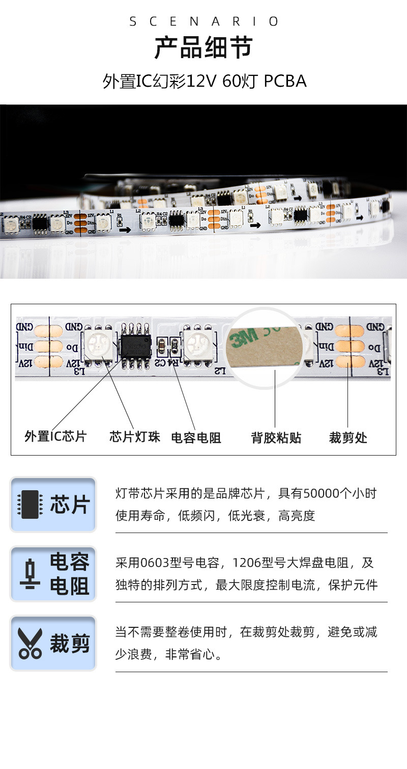 5050幻彩內/外置IC軟燈帶PCBA方案