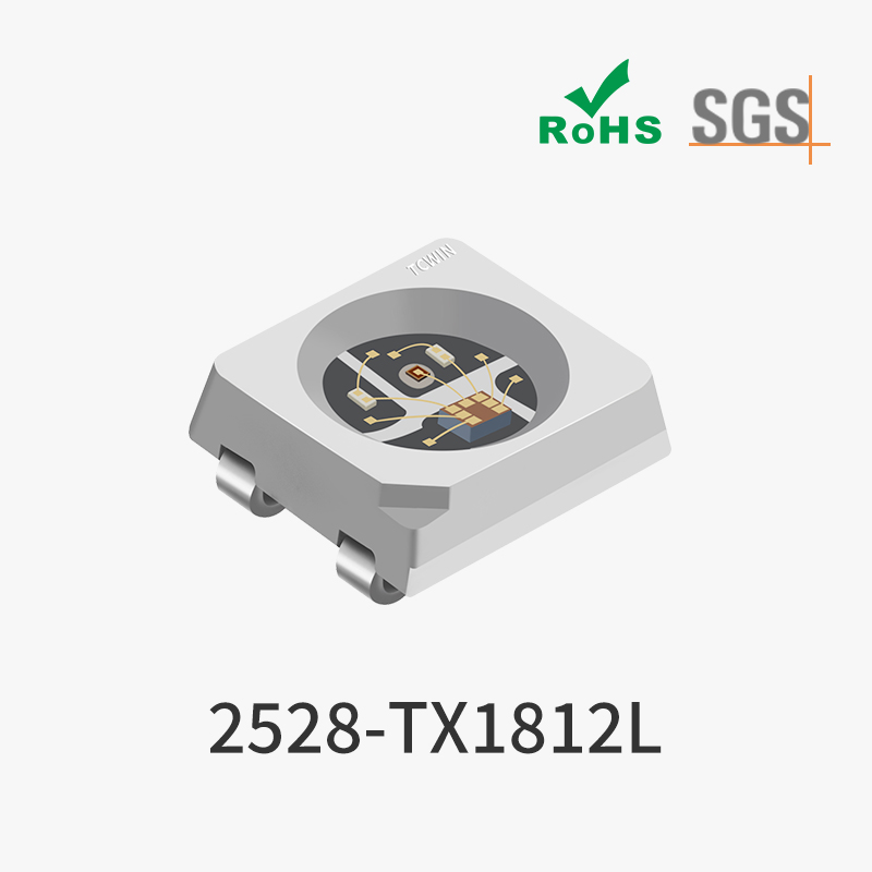 深圳天成照明所封裝生產的2528幻彩燈珠,型號為:TX1812L和TX1812L5,驅動電壓為5V,電流參數為12ma和5ma兩個配置,發(fā)光角度120度,灰度等級256,發(fā)光顏色原理可達千萬級色彩。2528適應型體積內封RGB三原色發(fā)光芯片,再在RGB基礎上嵌入信號IC作為實現單點單控,逐點掃描功能的升級。實現單顆燈珠可通過外部muc進行編程控制,單顆燈珠可尋址,主要體現效果為單路電路設計可實現產品RGB光效的更多樣化。燈光跑馬。漸變,流水流光效果更佳。 小體積的smd封裝更貼合特殊空間的設計排布。很多時候在設計產品光效的時候,因為考慮到應用空間的大小,電路走線等原因,要么燈珠數量不夠造成光斑,暗區(qū)等外觀缺點,要么燈珠體積太大,有限空間無法進行貼片生產。而2528幻彩燈珠針對此類設計難點進行封裝,功能升級,實現可以在單面板單線路多功能的光效設計。主要應用領域為:LED幻彩燈條、便攜式夢幻音響、電腦機箱、風扇裝飾燈、LED柔性全彩點陣像素屏、LED幻彩服飾、LED幻彩鍵盤、航模、智能手環(huán)等產品。