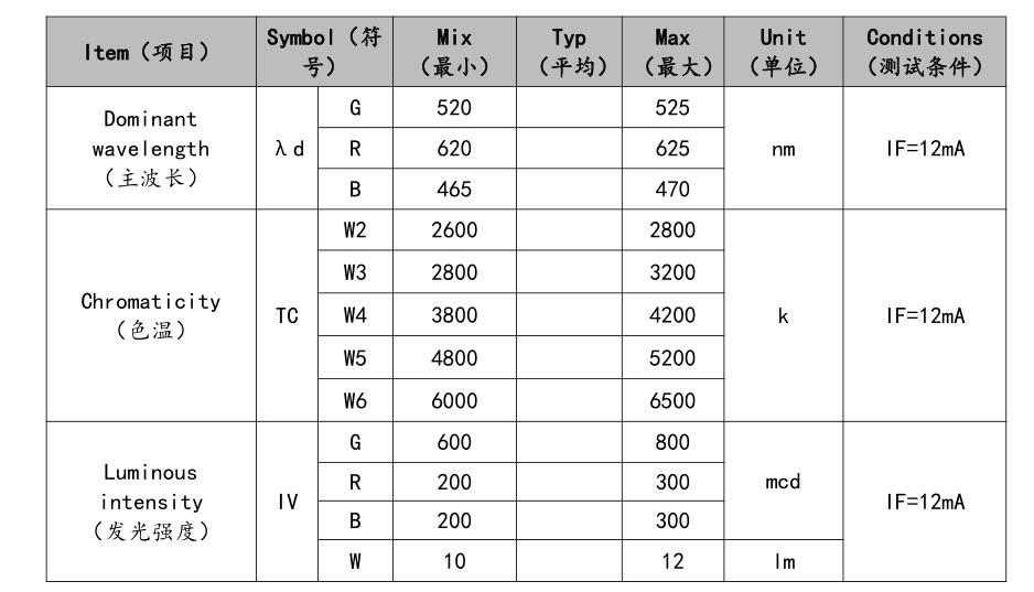 5050rgb燈珠參數(cree5050rgb貼片LED燈珠)