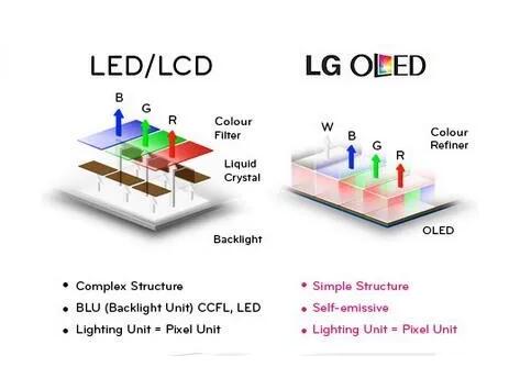 (LED和LCD結構圖,圖片來源網絡侵刪) 下面對這兩種顯示器進行詳細介紹: 一:LED顯示器 LED顯示器就是以LED發光二極管作為背光源的顯示器。也就是說,LED顯示器也是液晶顯示器LCD的一種。 液晶是液態的晶體,本身是不會發光的,它只是輔助折射光,而LED顯示器的背光源就是LED發光二極管。 二:LCD顯示器 LCD顯示器通常是指以陰極射線管CCFL作為背光源來發光的,進而通過晶體進行折射的顯示器。 LCD顯示器理論上是包含LED顯示器的,LED顯示器只不過把以發光二極管為背光源的LCD顯示器,單獨稱為LED顯示器罷了。 再來談談LED顯示器和LCD顯示器的區別: 區別一:背光源不同。 從上面的概念可知,LED顯示器和LCD顯示器最大的區別就是背光源不同。LED顯示器的背光源是LED發光二極管,LCD顯示器的背光源是非LED發光二極管,比如陰極射線管等。 區別二:亮度的區別。 由于LED的亮度,比陰極射線管的亮度大,所以在亮度方面,LED顯示器比LCD顯示器更亮。 區別三:功耗不同。 功耗方面,LED發光二極管消耗的電能是小于陰極射線管的,所以LED顯示器功耗比LCD顯示器低。 區別四:色彩表現不同。 由于陰極射線管在色彩純度方面的表現不如LED發光二極管,所以LED顯示屏的色彩表現要優于LCD顯示器。 小知識: 上面所說的LED顯示屏并不是真正意義上的LED顯示屏,他只是LED背光顯示屏,仍然屬于LCD范疇,真正的LED顯示屏幕是OLED顯示器。OLED顯示器不屬于LED顯示器和LCD顯示器的任何一種,它是一種不需要背光源的顯示器顯示技術。但是OLED屏幕有一個缺點,就是頻閃,相比于LCD屏幕,對眼睛傷害更大。 LED和LCD的區別有四點,最主要的區別是背光源不同,其它還有亮度、功耗、色彩表現等方面的區別。 LCD與LED液晶顯示屏有什么區別 LED顯示器與LCD顯示器相比,LED在亮度、功耗、可視角度和刷新速率等方面,都更具優勢已取消到該網頁的導航。利用LED技術,可以制造出比LCD更薄、更亮、更清晰的顯示器。