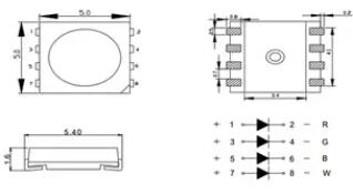5050rgbw串珠包裝尺寸:5.0*5.0*1.6mm